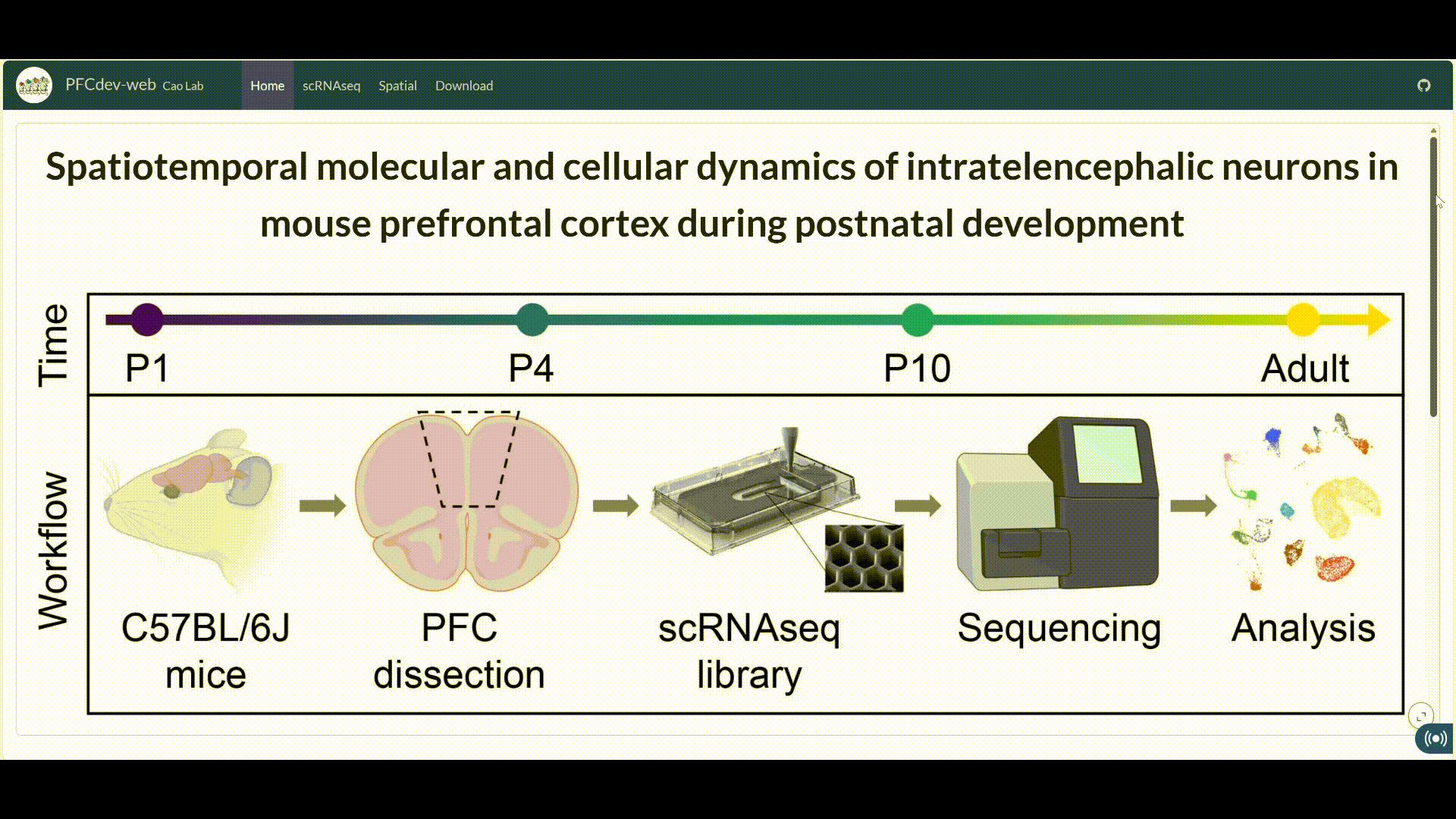 Zheng H, Yan K, et al. A single-cell spatiotemporal transcriptomic atlas of mouse prefrontal cortex maps dynamics of intratelencephalic neurons during postnatal development. PLOS Biology.